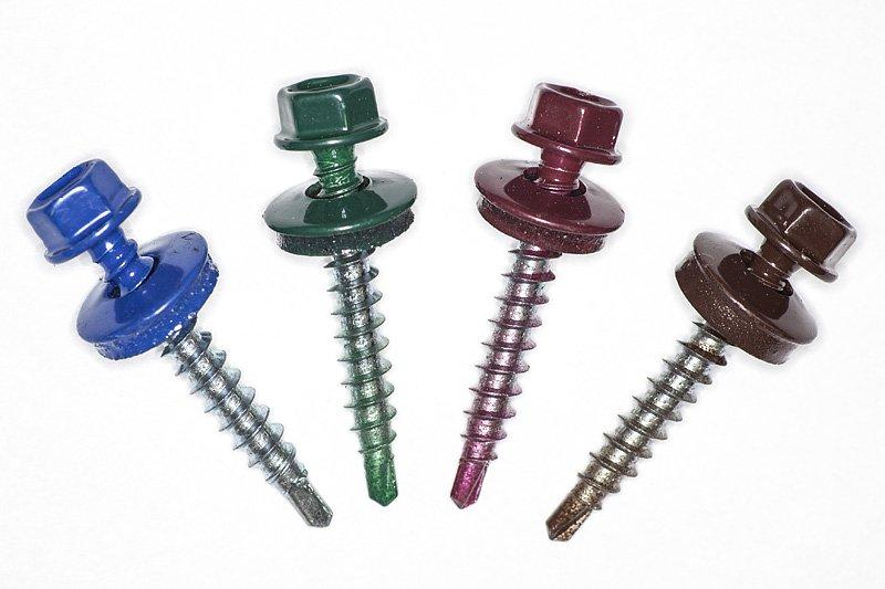 Шестигранная головка (D 8 мм) с шайбой и резиновой прокладкой, наконечник-сверло. Толщина защитного покрытия 50-70 мкр.